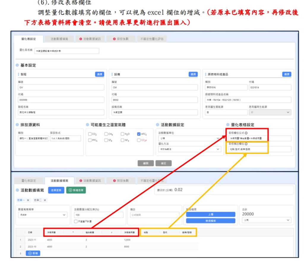 - 若覺得當前量化表的欄位不符貴司需求,也可以客製化量化表欄位,可根據實際的EXECEL欄位到量化表設定來定義計算公式,及需要的欄位